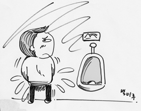 문고리가 고장난 화장실에 앉아서 큰일(?) 해결하고 있는데 청소하시는 아줌니가 들어오시더니 화장실 밑에 한뼘정도 되는 틈으로 대걸레질을 쓱~쓱~ 문열릴라 문고리 꼭잡고 있는데... 이 아줌니 힘이 장사네 문을 확 열어 젖히는데 덩달이 끌려 나가서 문고리 붙들고 대롱대롱 메달린적도 이뜸... 아놔~~~~